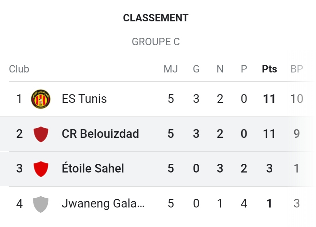A l’issue de cette 5e journée, le Raja Casablanca caracole en tête avec 12 points, devant l’ESS (9 pts) et AmaZulu FC (6 pts), alors que Horoya AC ferme la marche avec 3 points.