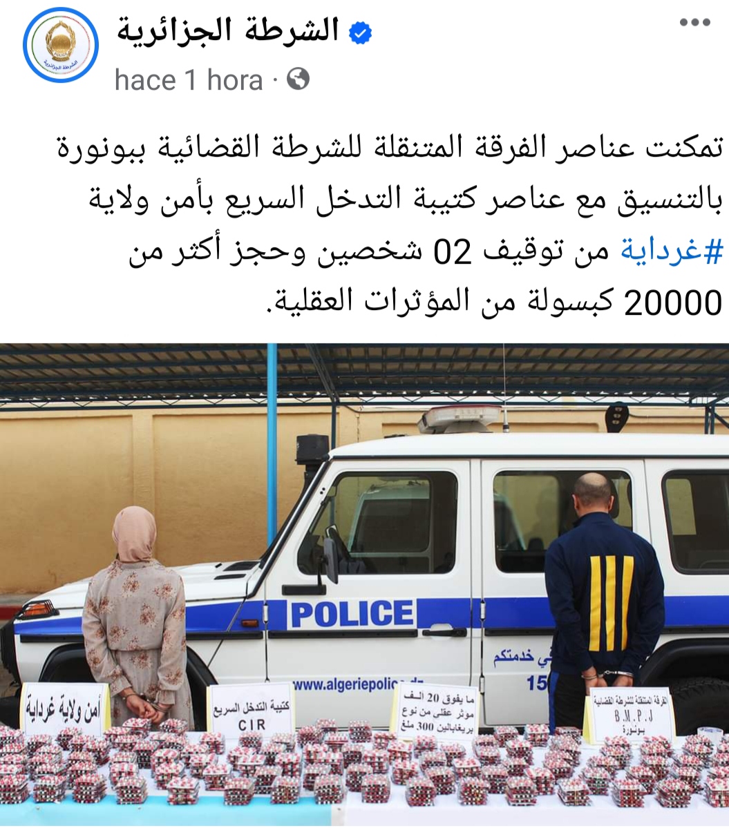 Au total, 2 personnes, dont une femme, ont été arrêtées et saisie de 20 000 comprimés de psychotropes, a, d’ailleurs, fait savoir la sûreté nationale sur sa page Facebook.