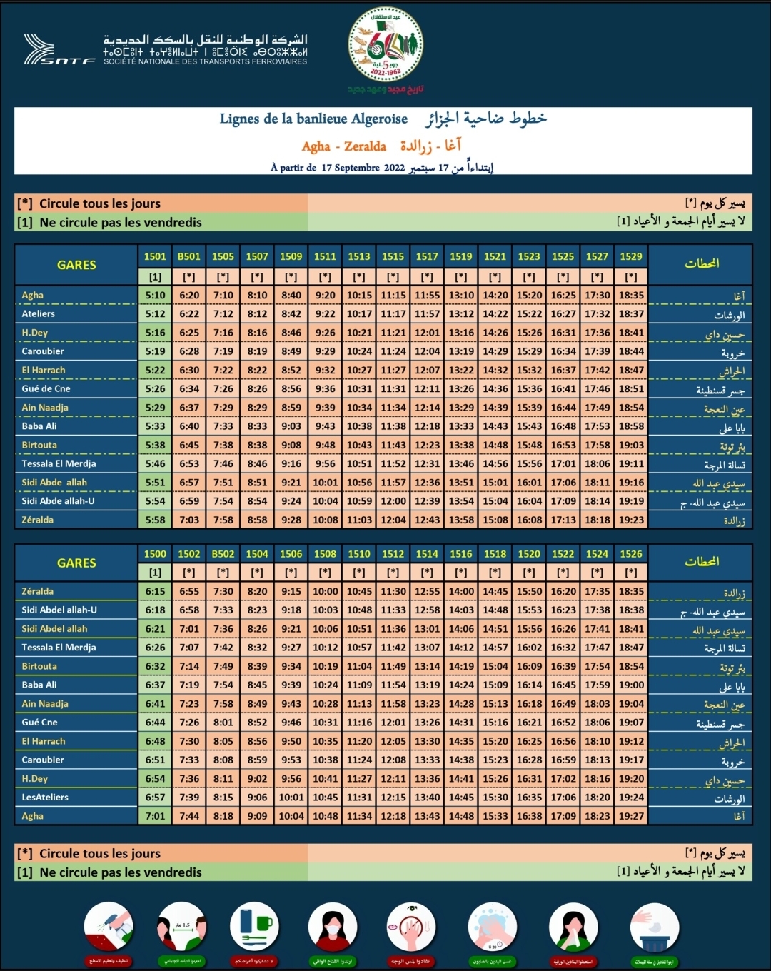 وسيدخل البرنامج الجديد حيز التنفيذ ابتداء من يوم السبت 17 سبتمبر الجاري. كما سيخص الخطوط (الطويلة والجهوية). أما ضواحي (عنابة، قسنطينة، وهران) تبقى بنفس التوقيت المعتاد.