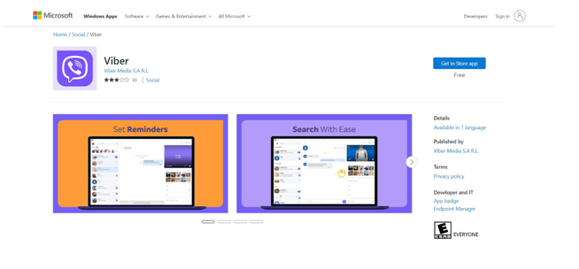 ولذلك جاء القرار بطرح التطبيق على تلك المنصتين بشكل رسمي. ليكون أسهل للوصول خصوصاً لمستخدمي ويندوز الذين سيتمكنون بكل سهولة من تحميل التطبيق من متجر مايكروسوفت. وتحديثه بشكل مستمر، كما صنف تطبيق Viber داخل هذين المتجرين ضمن فئة تطبيقات التواصل، بجانب تيك توك و WeChat.
