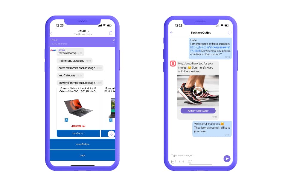 أمثلة عن روبوتات المحادثة ورسائل الأعمال التخاطبية على فايبر