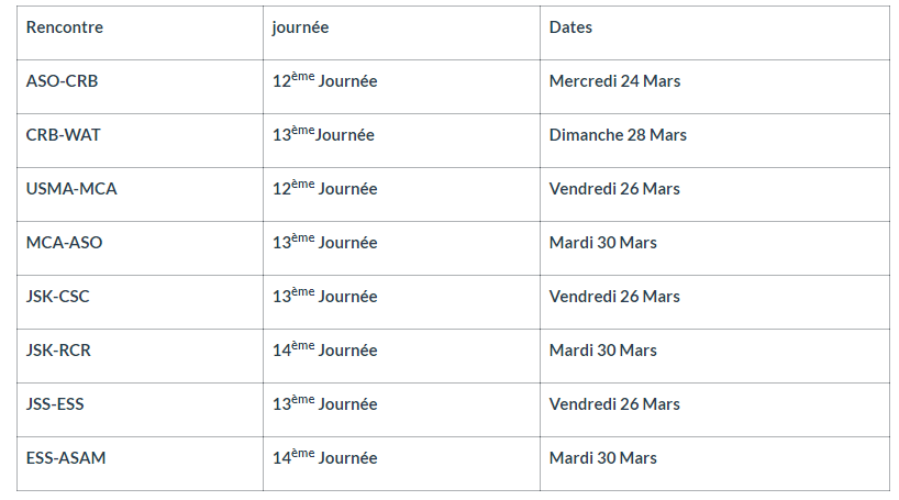 هذا وسيواجه إتحاد العاصمة نادي مولودية الجزائر يوم 26  مارس المقبل حسب ما جاء في الرابطة.