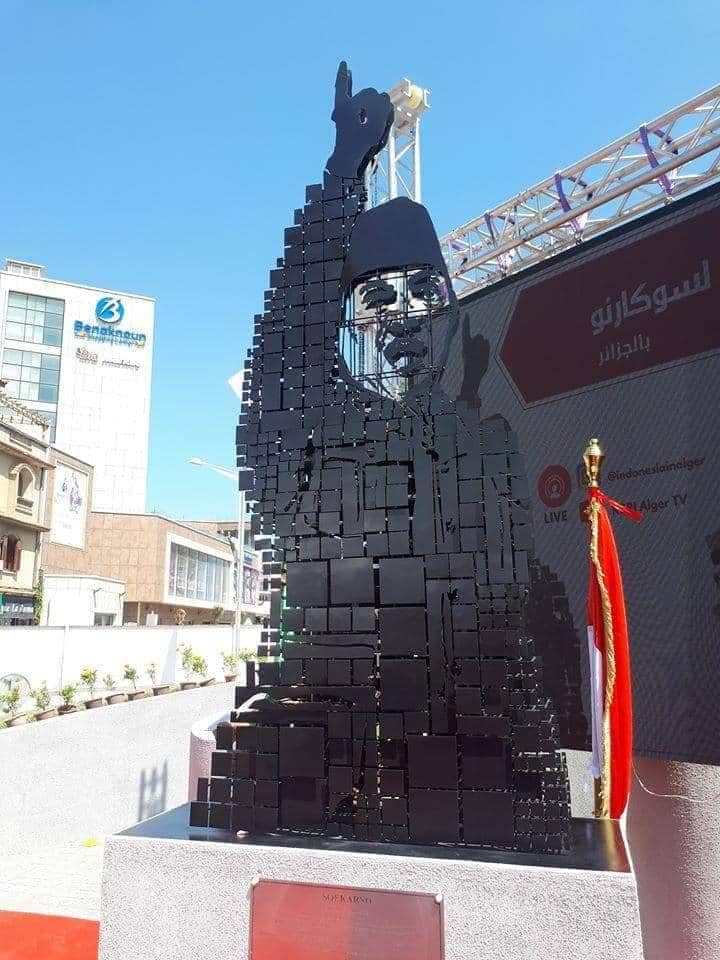 التمثال الذي أقيم ببلدية بن عكنون بالجزائر العاصمة أشرفت على تدشينه سفيرة جمهورية اندونيسيا بالجزائر وعرفت حضور عدد من المسؤولين في الدولة.