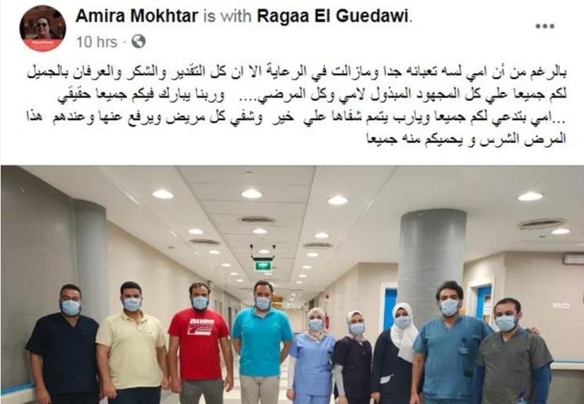 أحدث تعليق لإبنة الفنانة القديرة رجاء الجداوي، على فايسبوك، قلق جمهورها، بعدما كشفته حول مستجدات وضع والدتها الصحي بعد إصابتها بكورونا.