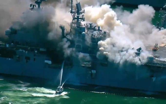 حريق مهول بسفينة حربية أمريكية في سان دييغو