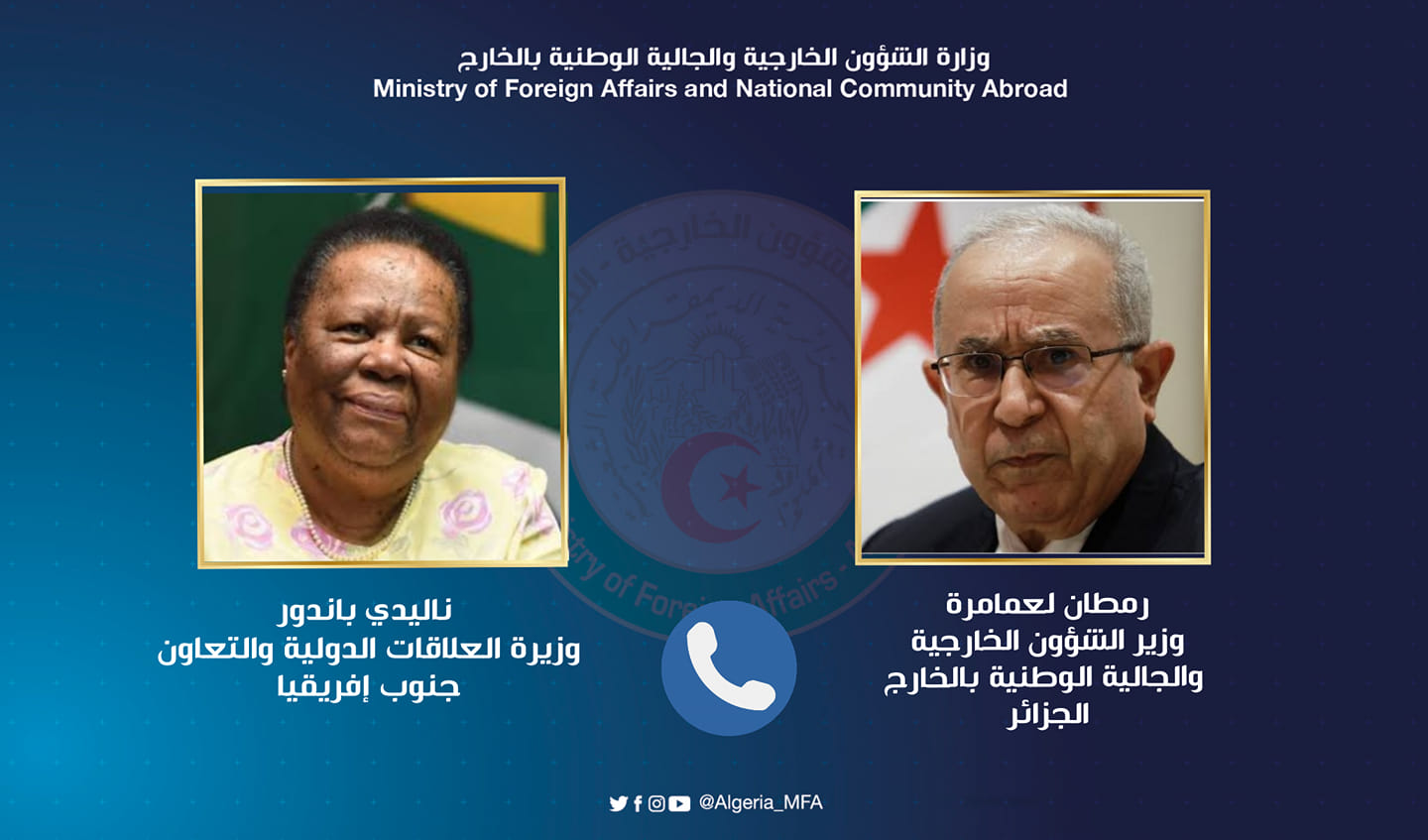 أجرى وزير الشؤون الخارجية والجالية الوطنية بالخارج، رمطان لعمامرة، مساء اليوم، اتصالا هاتفيا مع نظيرته الجنوب إفريقية، ناليدي باندور.